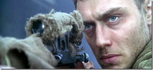 電影「大敵當前」中,蘇俄傳奇狙擊手瓦西里柴瑟夫與德國康尼上校決鬥的劇照。